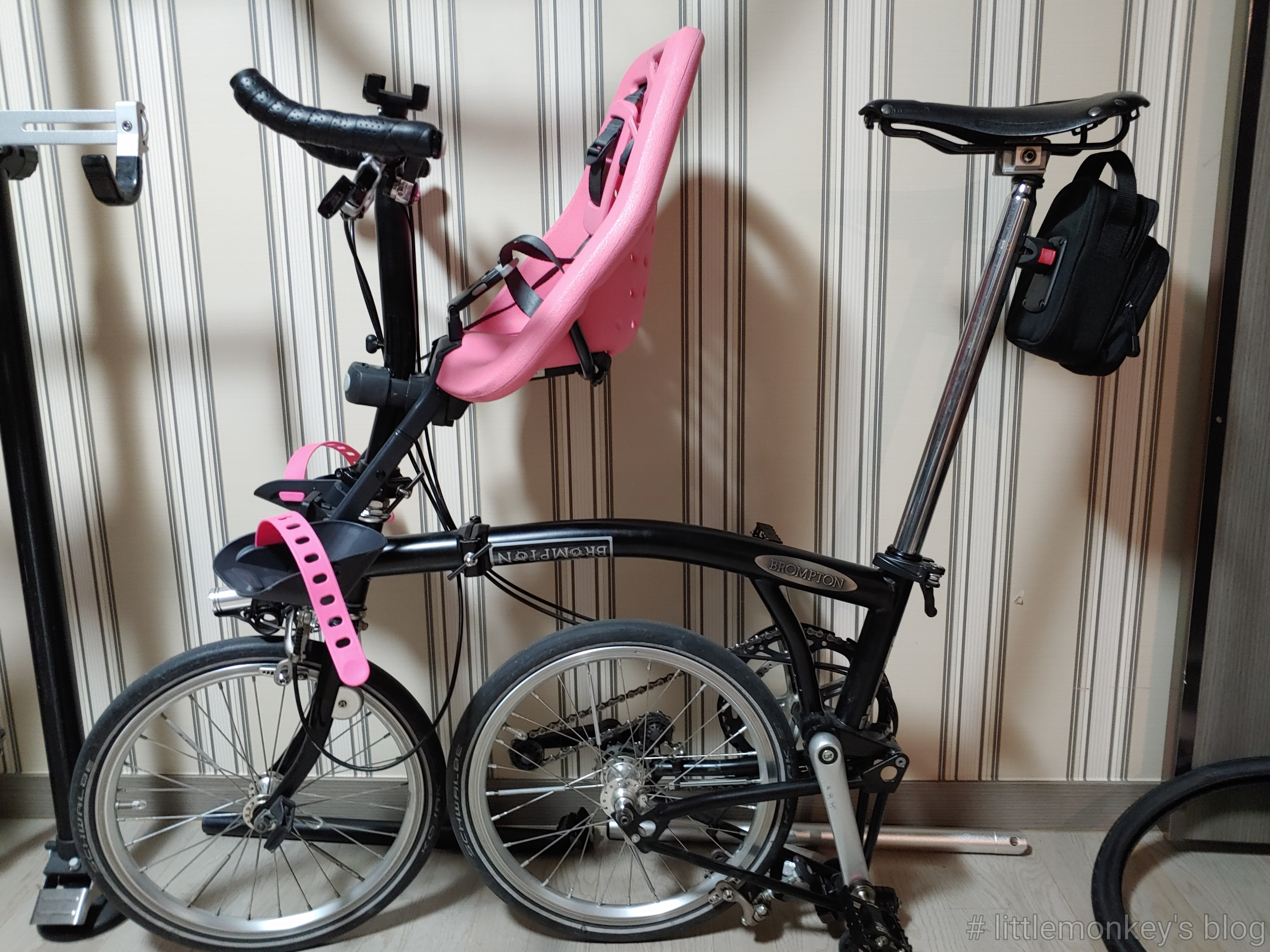 가진게 미니벨로 뿐이라 유아안장도 미벨에 장착을 했습니다. 처음에는 브롬톤에 했었구요. 가끔씩은 오리c8 에도 장착을 했었습니다.